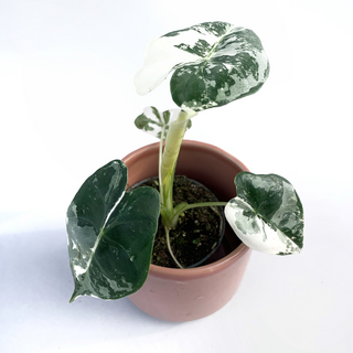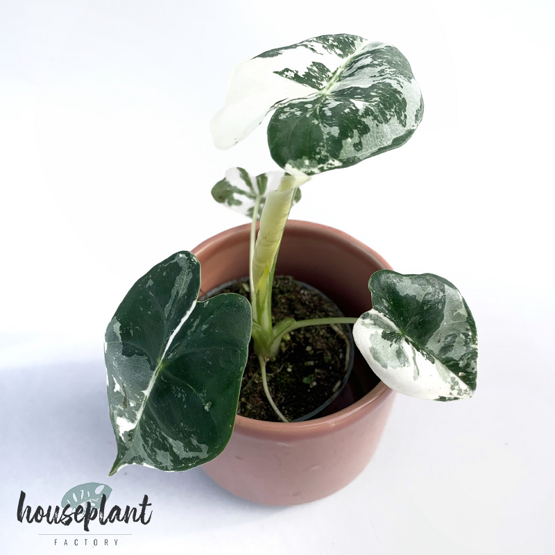 Die weiße Panaschierung der Blätter macht diese Variante der Alocasia Frydek zu einem besonderen Blickfang und einer sehr begehrten Rarität. In der freien Natur kommt die Alocasia Frydek nur auf der philippinischen Insel Luzon vor.
