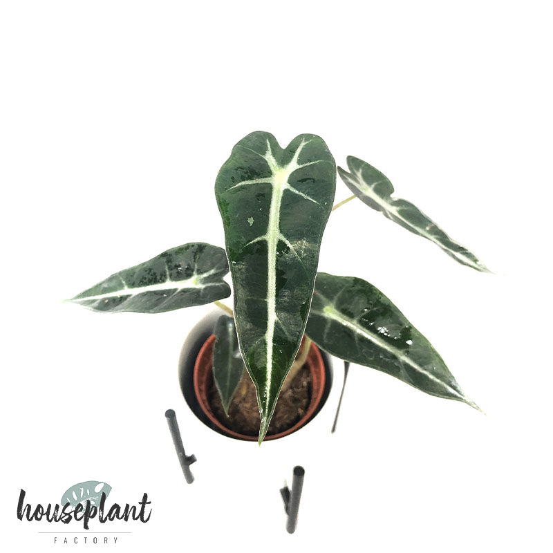 Her nickname Polly, unconventional for a plant, is similarly extraordinary as her eye-catching and charming appearance, because the arrow-shaped leaves of this rare Alocasia show a strikingly wavy border as they mature, which makes them an extravagant eye-catcher along with their contrasting prominent leaf veins.