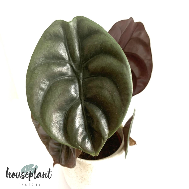 Die rot-schwarzen Blätter dieser Alocasia schimmern auffallend metallisch und machen diese seltene Pflanze daher zu einem Must Have für viele Pflanzenliebhaber. Ihr kupferner Glanz verlieh der Name, die ein wenig mehr Aufmerksamkeit bei der Pflege benötigt, den wissenschaftlichen Namen Alocasia cuprea.
