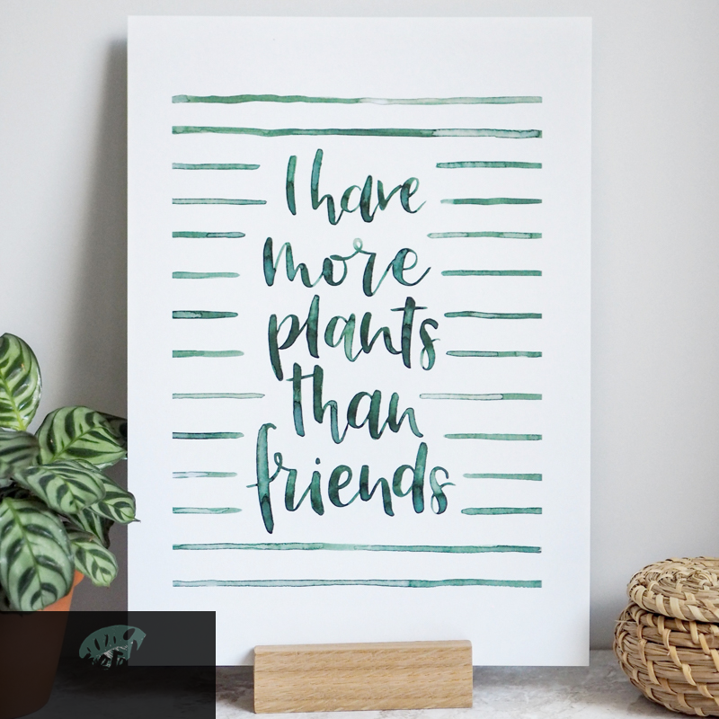The illustration and the lettering are hand painted by Frollein Schmid with watercolor paints. It's matte printed on 300g / m² recycled paper. The back is blank and only provided with her logo.