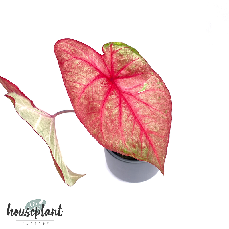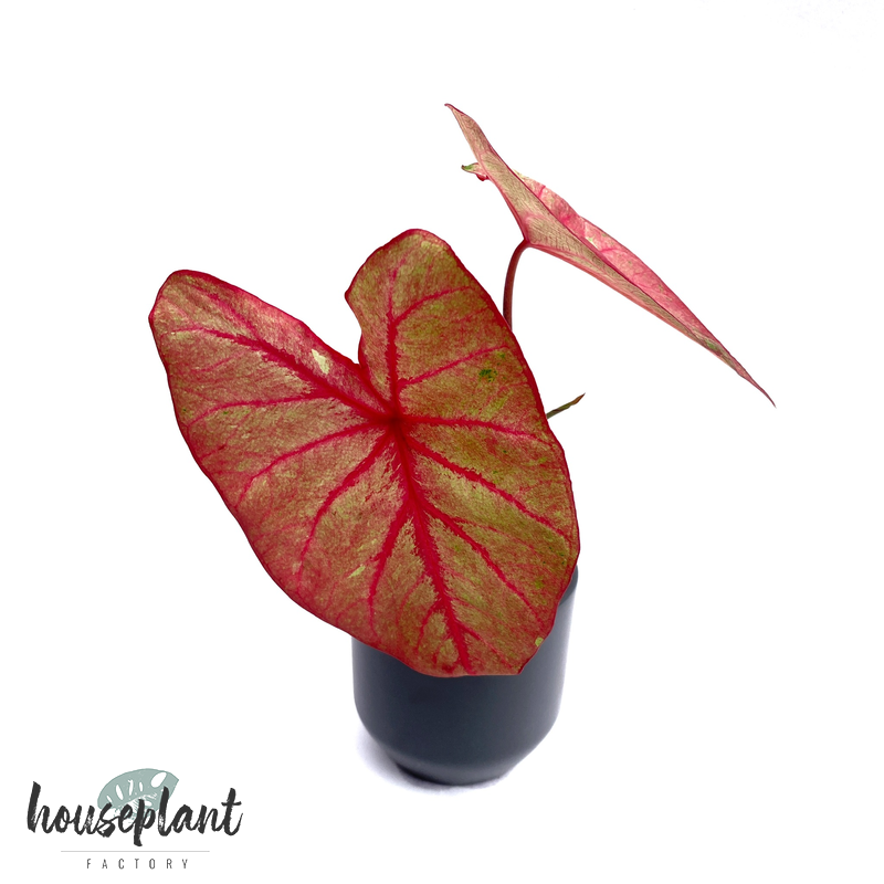 Schöne Caladium im 8cm Topf. Sie erhalten eine Pflanze mit 1-2 Blättern die bereits gekeimt ist. Schöne und einfach zu haltende Zimmerpflanze.