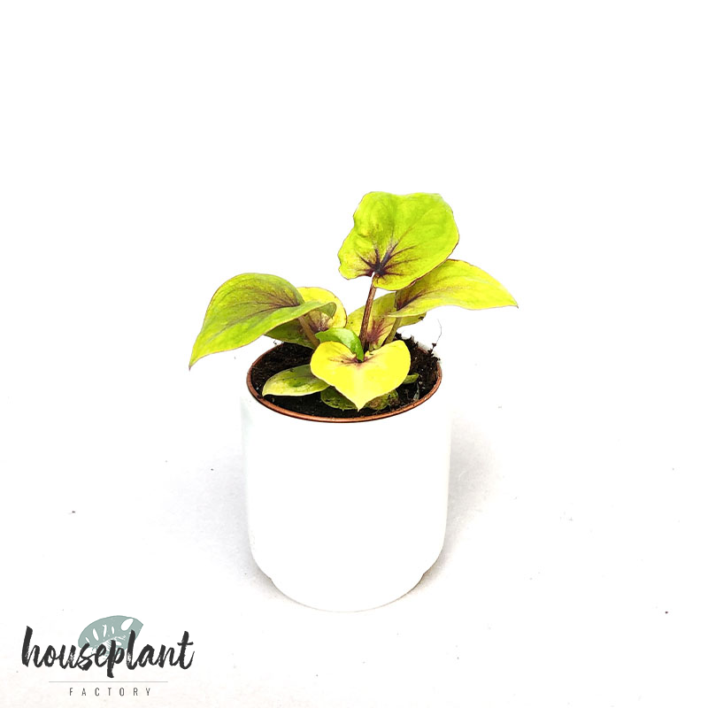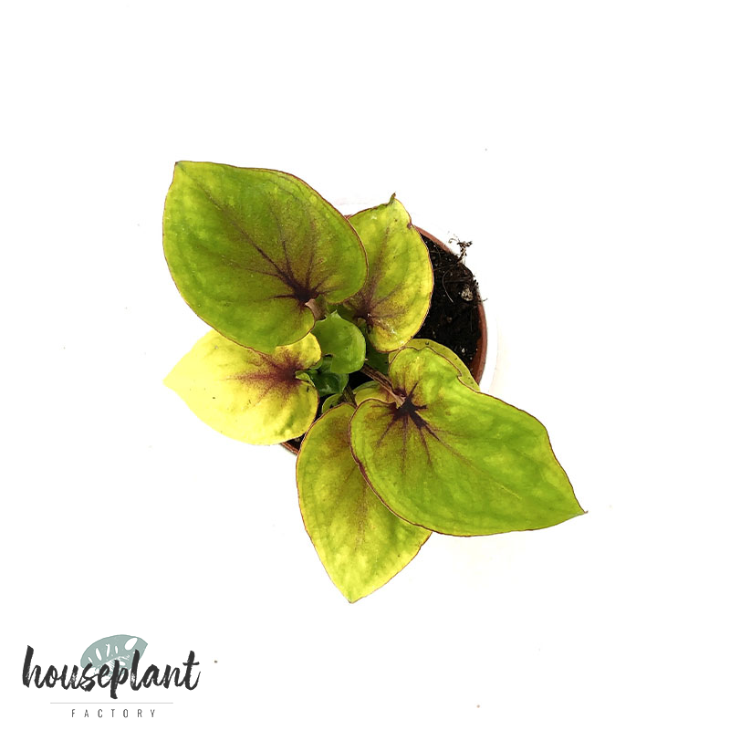 Sehr schöne Caladium bicolor. Mit gelb-roten Blättern. Ein schöner Blickfang. Sie erhalten eine Babypflanze.