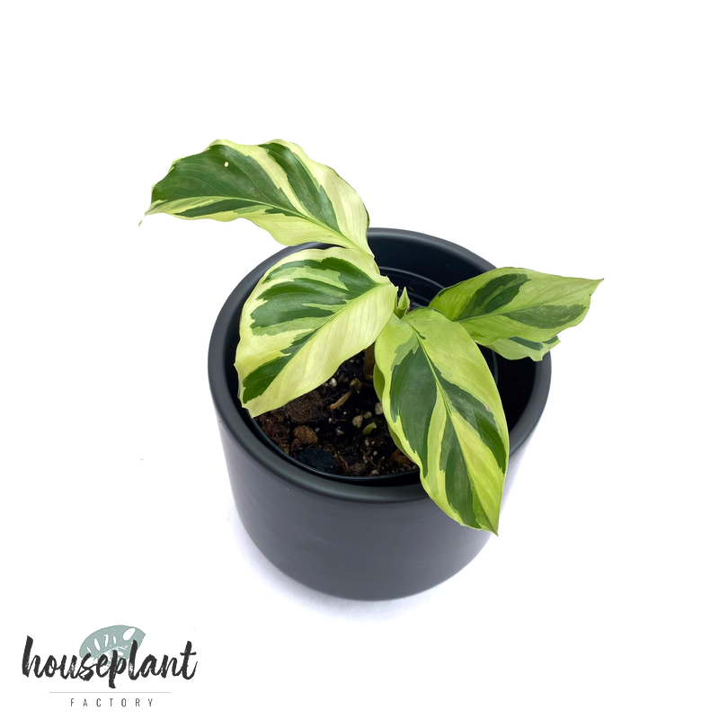 Calathea yellow fusion, eine seltene Calatheaart mit unterschiedlich panaschierten Blättern. Sie erhalten eine bewurzelte Pflanze. Die Pflanze wird ohne Topf verschickt, dieser ist nicht im Preis mit inbegriffen.