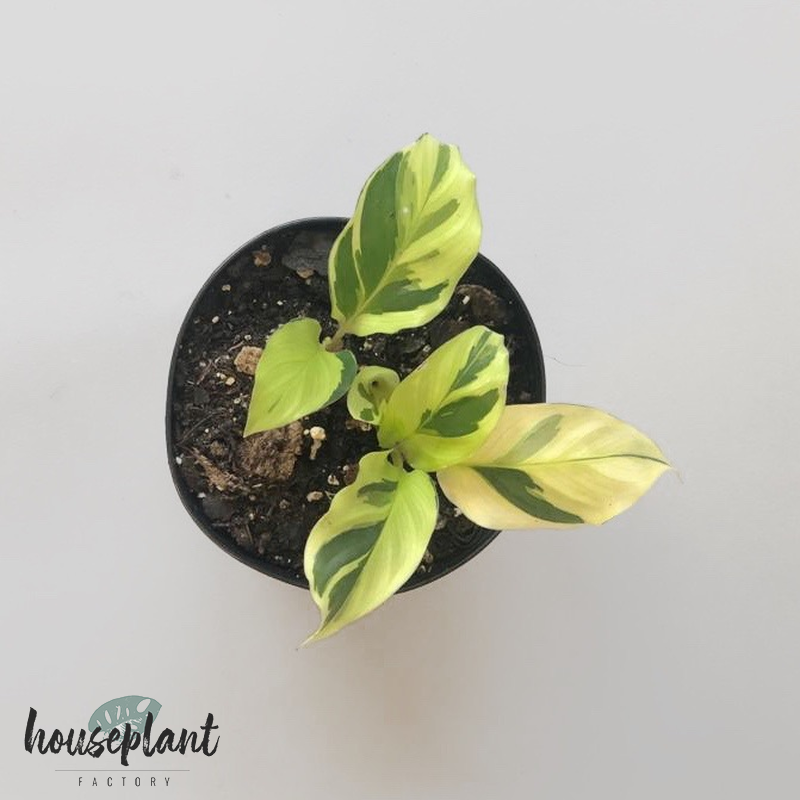 Calathea yellow fusion, eine seltene Calatheaart mit unterschiedlich panaschierten Blättern. Sie erhalten eine bewurzelte Pflanze. Sehr seltene Art in dieser Farbe.