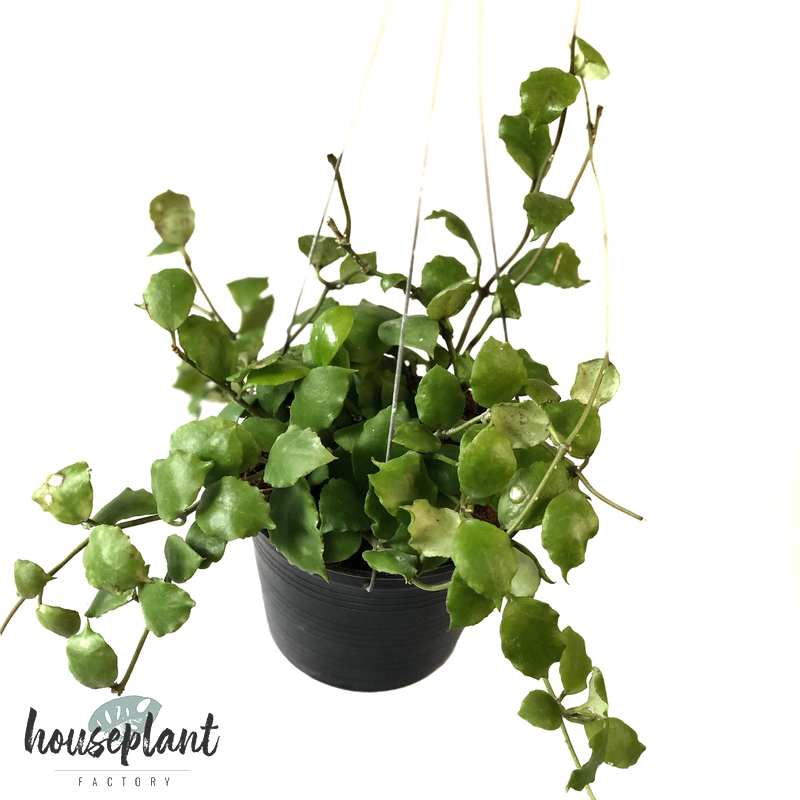 Schöne Hoya mit gezacktem Blatt im Hängetopf. Hoya vertragen es trockener und einen hellen Standort.
