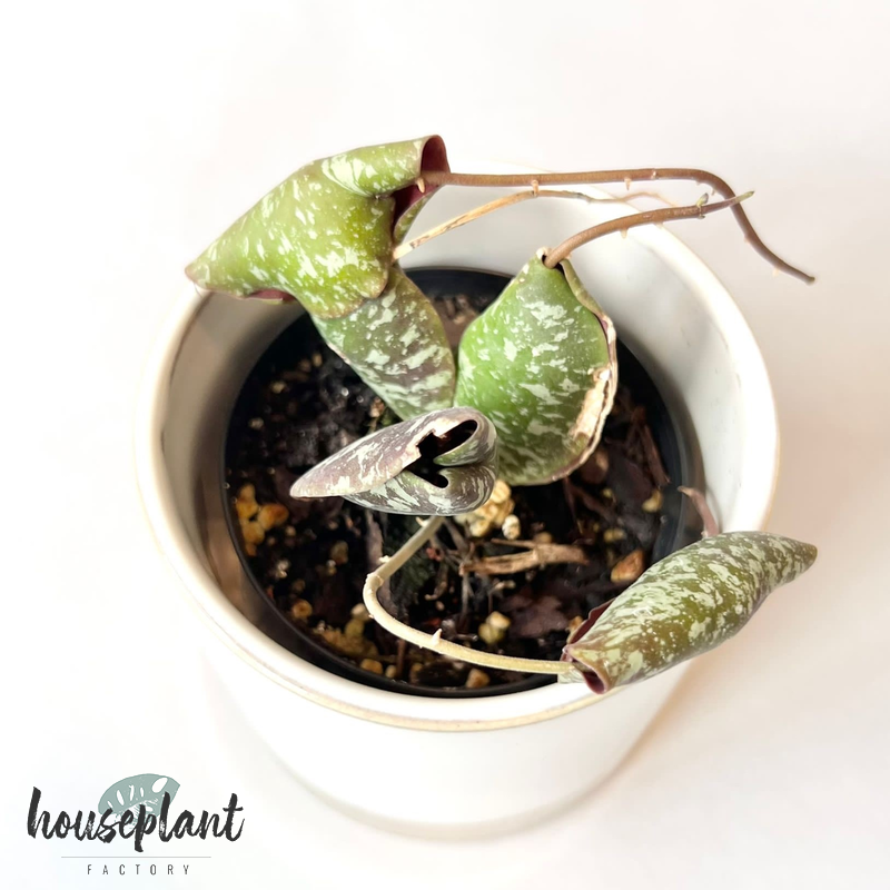 Seltene Hoya mit punktiertem Blatt. . Hoyaarten vertragen es trockener und einen hellen Standort.