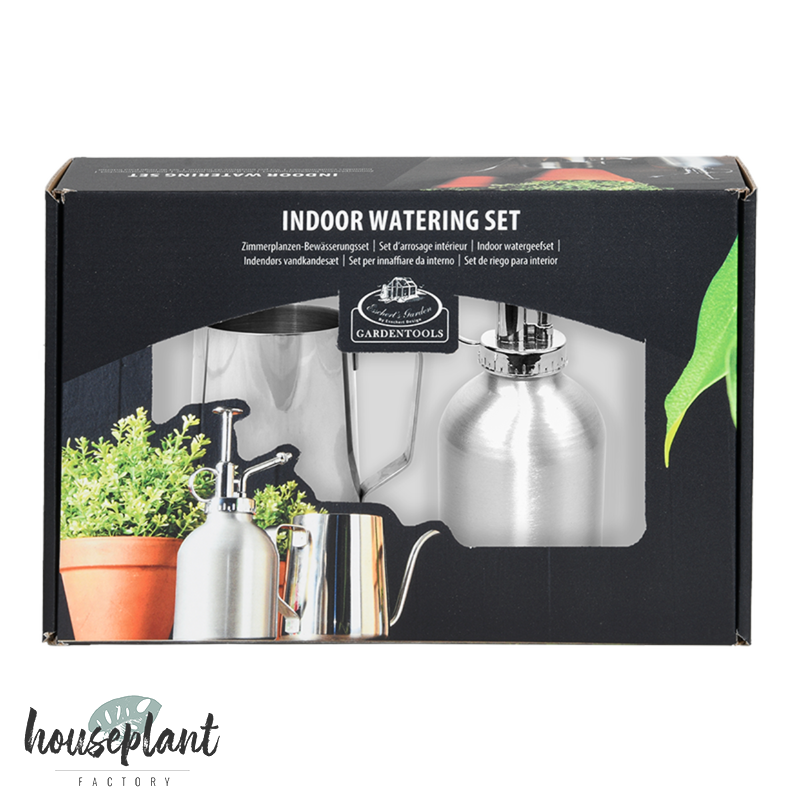 Dieses Set besteht aus einem Pflanzensprühgerät und einer Gießkanne. Das Sprühgerät erzeugt einen feinen, weichen Nebel. Die Gießkanne hat einen schmalen Auslauf zum gezielten Gießen.