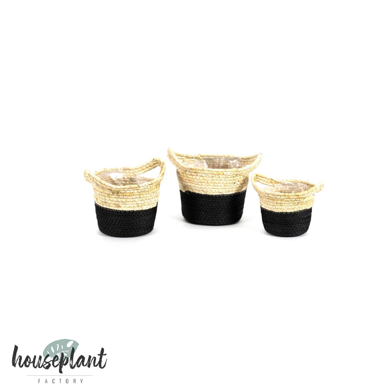 Korb Topf aus weichem Naturblatt, schwarz abgesetzt, rund