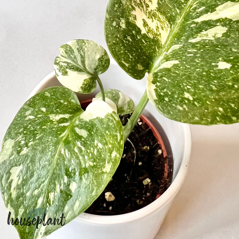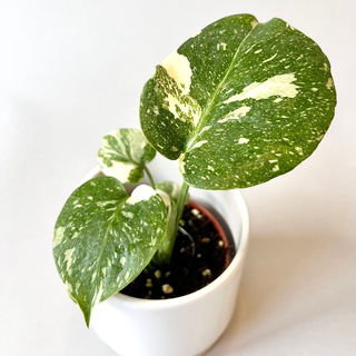 Ihre spektakuläre, cremefarbene Panaschierung, deren Sprenkel an die Sternenkonstellation des Himmels über Thailand erinnern, haben dieser einzigartigen Monstera ihren Beinamen Thai Constellation verliehen. Für echte Monstera-Fans ist diese sehr selten zu findende Pflanze ein gefragtes Must Have.