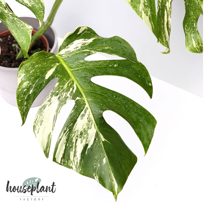 Etablierte Mutterpflanze mit mehreren Blättern, unterschiedlich panaschiert.Halbschatten keine direkte Sonne.