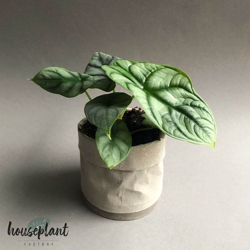 The Alocasia Silver Dragon has a very compact growth habit and is therefore perfect for keeping in the terrarium. Its heart-shaped leaves have a leathery texture and its contrasting colouring of silver-green areas with dark veining make the plant stand out impressively.