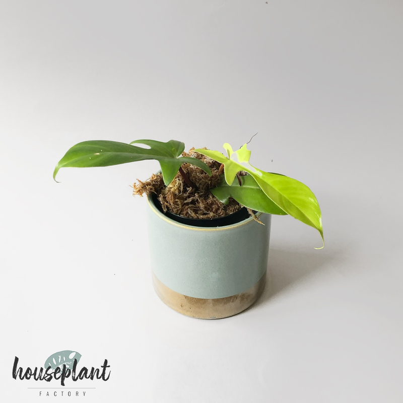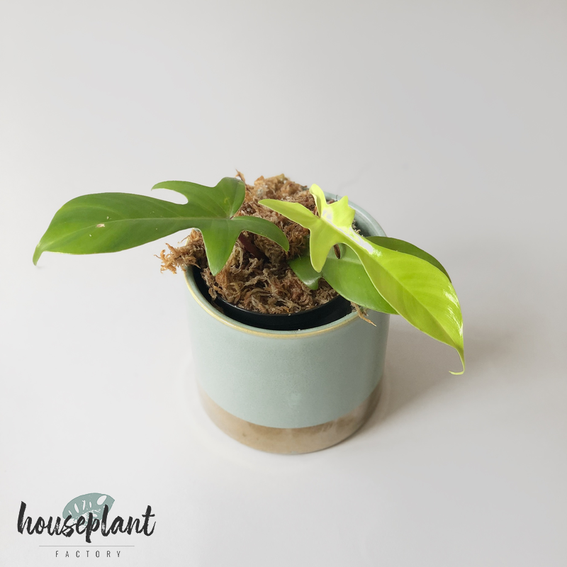 Philodendron Florida Ghost Ableger mit 2 bis 4 Blättern und Luftwurzeln.