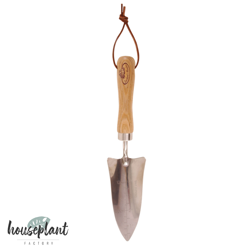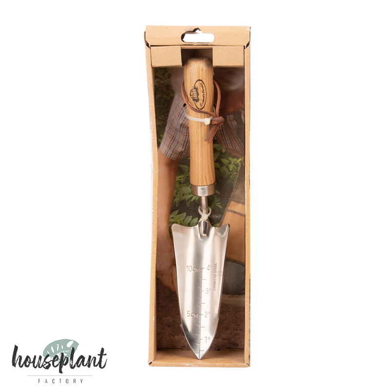 Die Umpflanzblumenkelle hat ein langes, schmales Blatt zum Ausstechen von Wurzelballen.