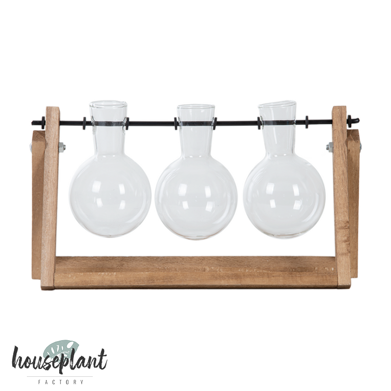 With this wooden cuttings set with one, two or optionally three glass vases, cuttings are easy to care for. Can also be used as a flower vase or for germinating flower bulbs.
